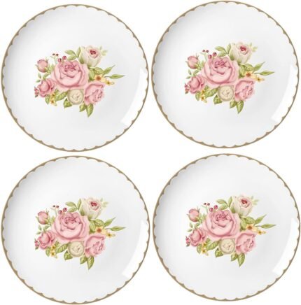 Vintage Floral Flowers Pattern Ceramic Salad Plates, Pasta Plates, Fruit Plates, Appetizer Plates, Dessert Dishes,Dinner Plates, Holiday Plates, Home Decoration, Set of 4-Rose
