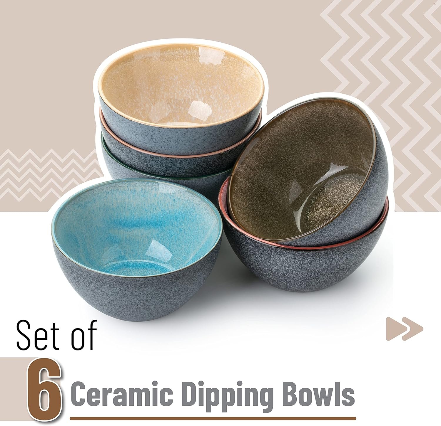 Ceramic Cereal Bowls, 29 oz, 6 Pack, 6.3 Inches, Glazed Colors Inside, Chip-Resistant Dishwasher & Microwave Safe Bowls for Cereal, Soup, Salads, Snacks, Side Dishes